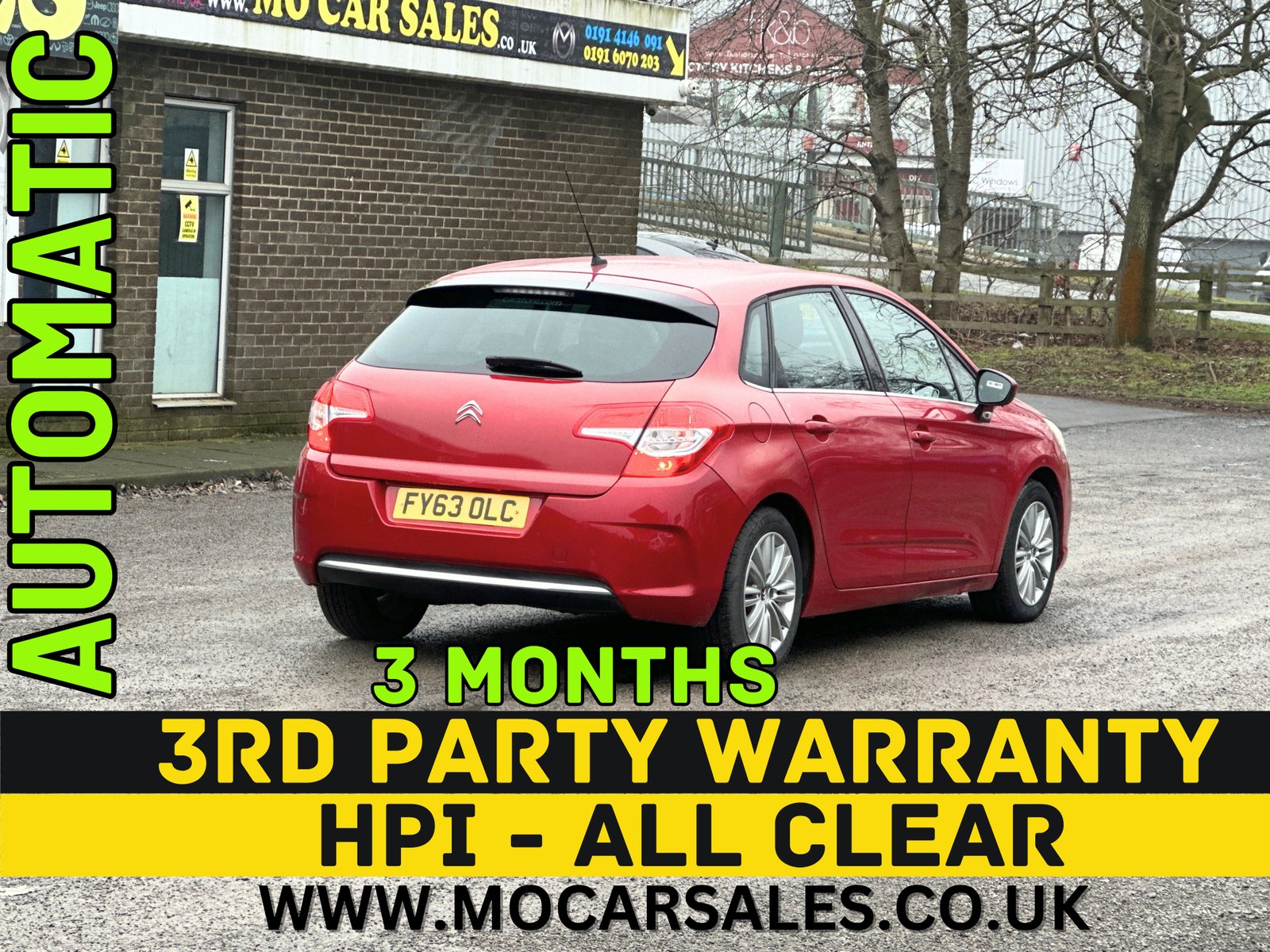 2012 Citroen C4 1.6 Diesel _AUTOMATIC Mileage: 101k only - Genuine & Warranted MoT: 01 Aug 2026 Road Tax: £20 / Year Former Keepers: 3 3rd Prty Warranty: 3 Months HPi: All Clear - No Category recorded ►Price: £3250 - FIXED PRICE◄ ►Guaranteed Lowest Price Dealership in the UK◄ ►Fully Serviced_Timing belt done at 93k miles_ ►Bluetooth_Parking Sensors_ Climate Control, Alloy Wheels, Logbook present_ x2 Remote Key. ►Some lacqure sun-burn ►Excellent Runner - Good Body condition for the Age & Price ►Please visit our garage. ►x27 Automatic cars in store. ►Mo Car Sales◄ Tundry Way - Toll Bridge Road. Newcastle - Blaydon. NE21 5SJ ►Open 6 days a week: 10:00 to 17:30 ►Sunday: CLOSED ►Hundreds of happy customers throughout the country. Quality Cars at Bargain Price